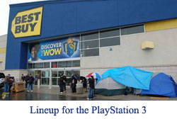 PlayStation 3 & Nintendo Wii Launch Week Well launch week has come and gone for the next-gen consoles. A new era of gaming was unveiled to the world, with both the PlayStation 3 and Nintendo Wii hitting store shelves on the 17th and 19th of November respectively. FFOmake was there to cover it and round up all the info you need to know about what went down on launch day. It was a relatively smooth launch for both consoles. Well as smooth as one could expect with there being such a limited supply of both consoles. The hardest of the hardcore gamers lined up 2 ½ days early at local Best Buys, Wall marts and Future shops in order to ensure their right to purchase a PS3 and/or Wii. None of these mega corporate retail chains took any preorders, so they were running off a first come first serve basis. With Lawn chairs, tents, blankets and handhelds at their disposal; fearless gamers braved 2 days of spitting rain and cold Canadian November weather with smiles on their faces the whole way through. Many thought these individuals were stupid losers, just waiting around for “toys” when they should be working. That was until word got out that these “toys” were going for over 10 grand on EBay! In some downtown locations homeless people were paid $50 a night to hold a place in line!